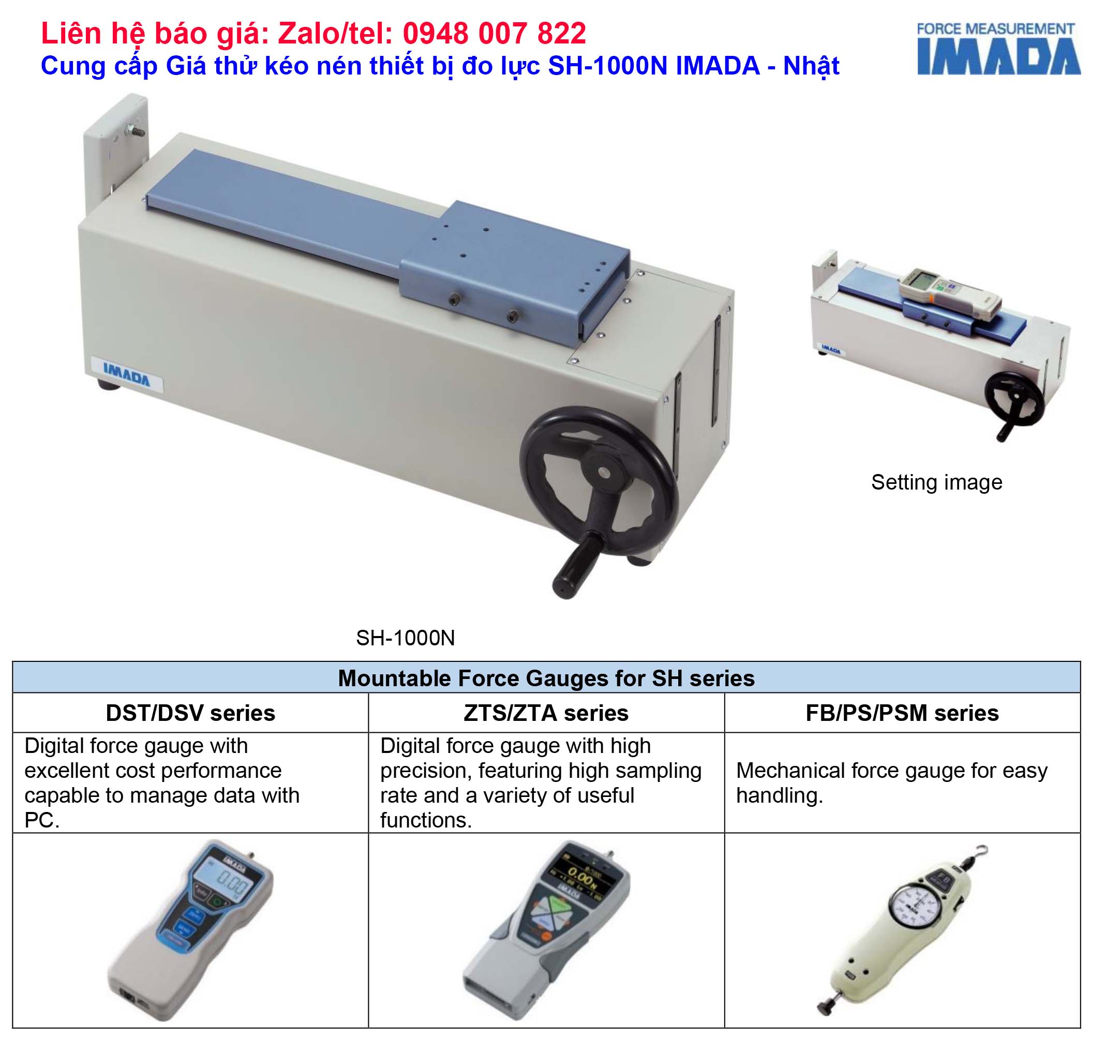 Thông số kỹ thuật Giá thử kéo nén Imada SH-1000N, SH-3000N